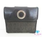 ブルガリ BVLGARI Wホック 二つ折り 財布 25127 ロゴマニア ブラック 黒 キャンバス レザー ロゴ ミニ コンパクト 【中古】 bs3926