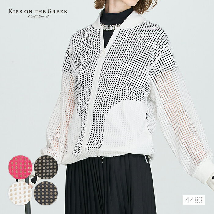 ゴルフウェア レディース アウター ブルゾン / メッシュ素材ジップアップブルゾン / 透け感のあるメッシュ素材のジップアップブルゾン ゆったり リラックス スピンドル F サイズ フリーサイズ ゴルフ女子 おしゃれ ゴルフウェア レディース