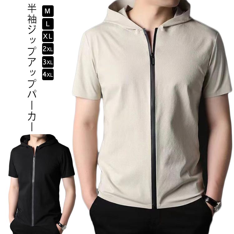 ジップアップ ブルゾン 半袖 パーカー メンズ 半袖ジャケット フード付き ジップアップパーカー 吸汗 ジップパーカー 大きいサイズ スリム 細身 アウター カジュアル ゴルフ スポーツ ウェア アウトドア ランニング ウェア
