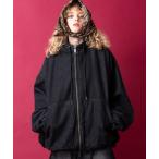 ブルゾン アウター a.p.o.v. ブラックデニムオーバーサイズジップアップフーディーブルゾン メンズ レディース