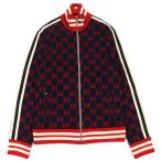 未使用品△GUCCI グッチ 496919 コットン100% GGジャガード ジップアップ ブルゾン トラックジャケット ネイビー レッド L 伊製 正規品