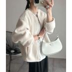 ブルゾン アウター ループツイードステンカラーショートジップブルゾン レディース