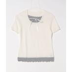 tシャツ リボン付き 配色トップス レディース