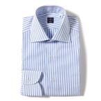 シャツ コットン ブルー ロンドンストライプ ワイドカラーシャツ メンズ
