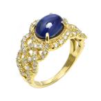 2.84ct天然ブルーサファイアリング 14号 K18YG 0.72ct天然ダイヤモンド カボションカット 編み込み イエローゴールド 地金6g 中古 送料無料