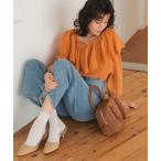 ニット セーター ウールブレンドギャザーフリル襟ニットトップス レディース
