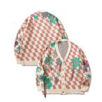 カーディガン HOOK -original- ブロックチェック花模様フリンジカーディガン メンズ レディース