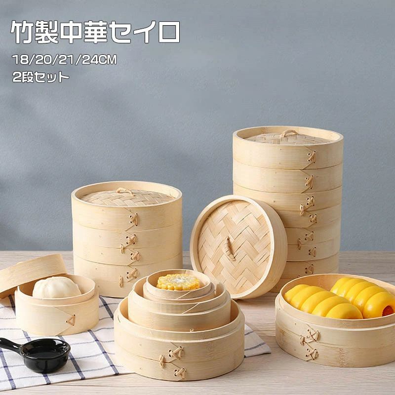 \1点5%OFF&2点10%OFF/竹中華セイロ 18 20 21 蒸し器 中華せいろ 蒸しせいろ 蒸し籠 便利グッズ 調理器具 天然竹製 二段 蓋付き ミニ中華セイロ IH対応 小籠包 多用途 餃子 竹蒸し器 ブロッコリー 蒸し野菜 プリン 饅頭 点心 中華料理専用 美味しい朝食