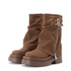 ブーツ ファスナー付きカバー風厚底ミドルブーツ レディース