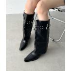 ブーツ スタッズダブルベルトカバーロングブーツ レディース