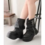 ブーツ 「NuNuNa」ベルテッド厚底エンジニアカバーブーツ レディース
