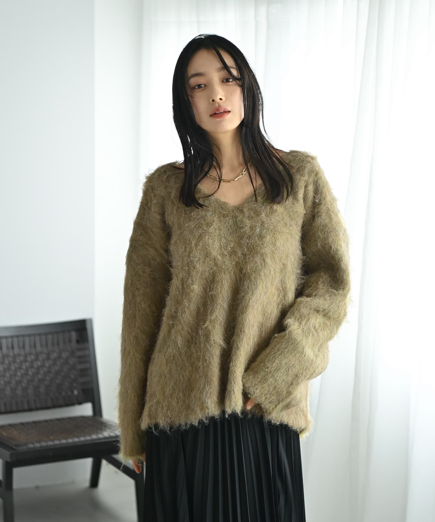 STYLE DELI(スタイルデリ)/【BLK001】ブークレシャギーVネックプルオーバー