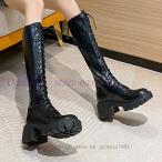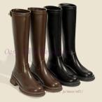 ロングブーツ 25.0cm ヒール ストレッチ 大きいサイズ ロング ブーツ ヒール 厚底 美脚 太めヒール チャンキーヒール疲れない 歩きやすい おしゃれ 筒 細め