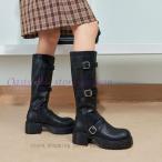 ロングブーツ レディース ローヒール 厚底 エンジニア サイドシッパー エンジニアブーツ 黒 コスプレ バックル ローヒール 美脚 ロング 太ヒール 歩きやすい