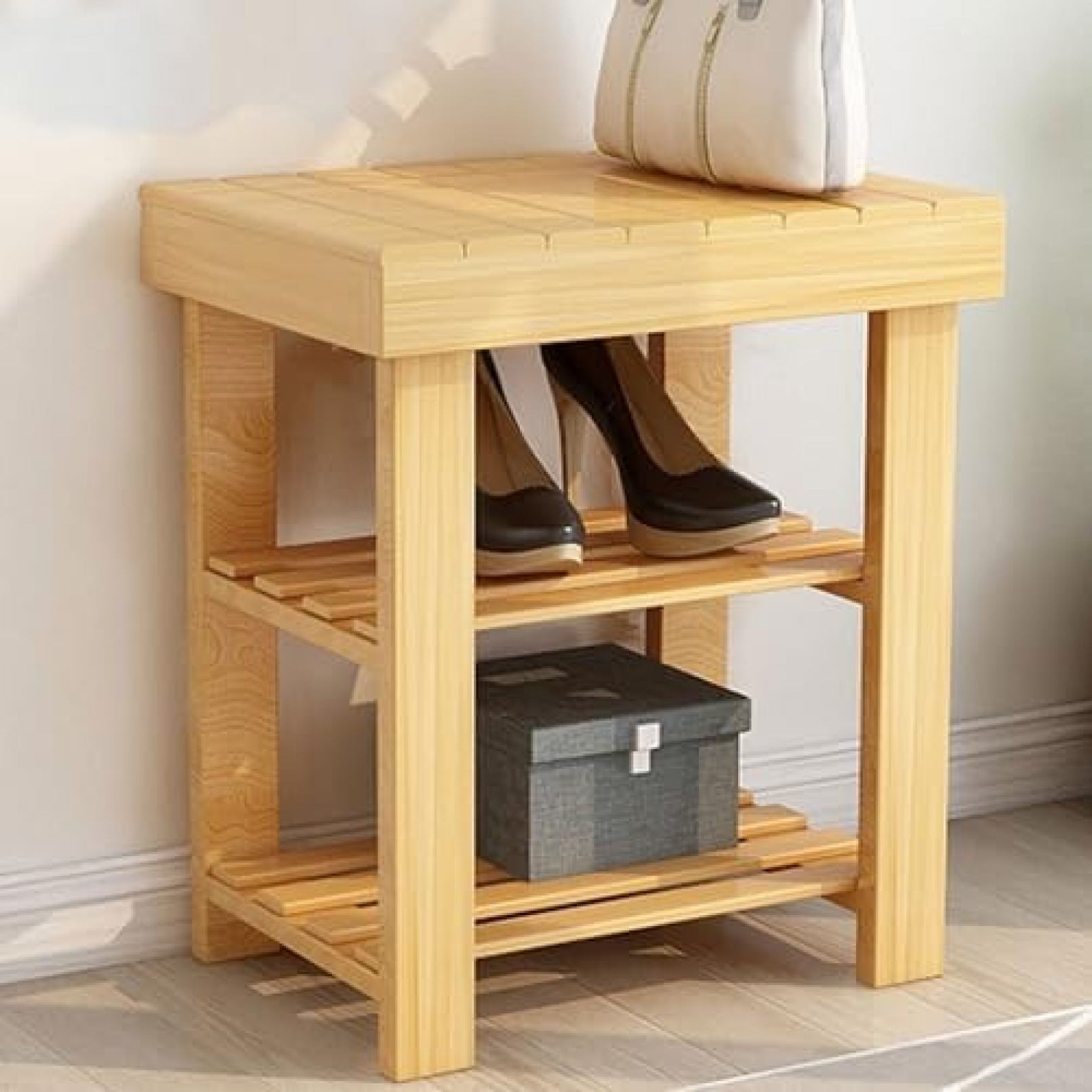 【20%OFFクーポン〜】靴棚 大容量 滑らかな表面 表面防水 竹シューラック 省スペース 多機能 シューズ ブーツ収納 コンパクト 靴棚 下駄箱 シューズキャビネット 据え置き型 (Size 40cm) :