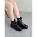 レザー調シンプルボリュームブーツ 女性 レディース 靴 シューズ 秋 冬 厚底 ミニマル すっきり 定番 カジュアル クラシック モード フェイクレザー 合皮 バックファスナー プラットフォーム
