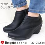 リゲッタ Re:getA ショート ブーツ ブーティ レディース 美脚 日本製 7cm ヒール ウェッジ アーモンドトゥ ブラック 秋 冬 R1978