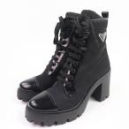 良品☆PRADA プラダ 1T239N トライアングルロゴ Re-nylon レザー ブーティー ショートブーツ ブラック 38.5 イタリア製 レディース