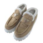プラダ PRADA スエードローファーブーティー ベージュ サイズ:37