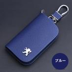 ★プジョー PEUGEOT★ブルー★キーケース スマートキー レザーキーケース 車用 鍵 収納 ラウンドファス ナー キーホルダー 軽量 aafk qtm
