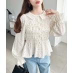 ブラウス シャツ キャンディスリーブ長袖シャーリング花柄ブラウス レディース