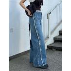 ジーンズ デニム デニムパンツ サイドフリンジワイドデニム レディース