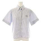 プラダ PRADA 23SS ストライプハーフスリーブシャツ ボタンダウン 38 ブルー P459GR /HK ■OS ■SH レディース
