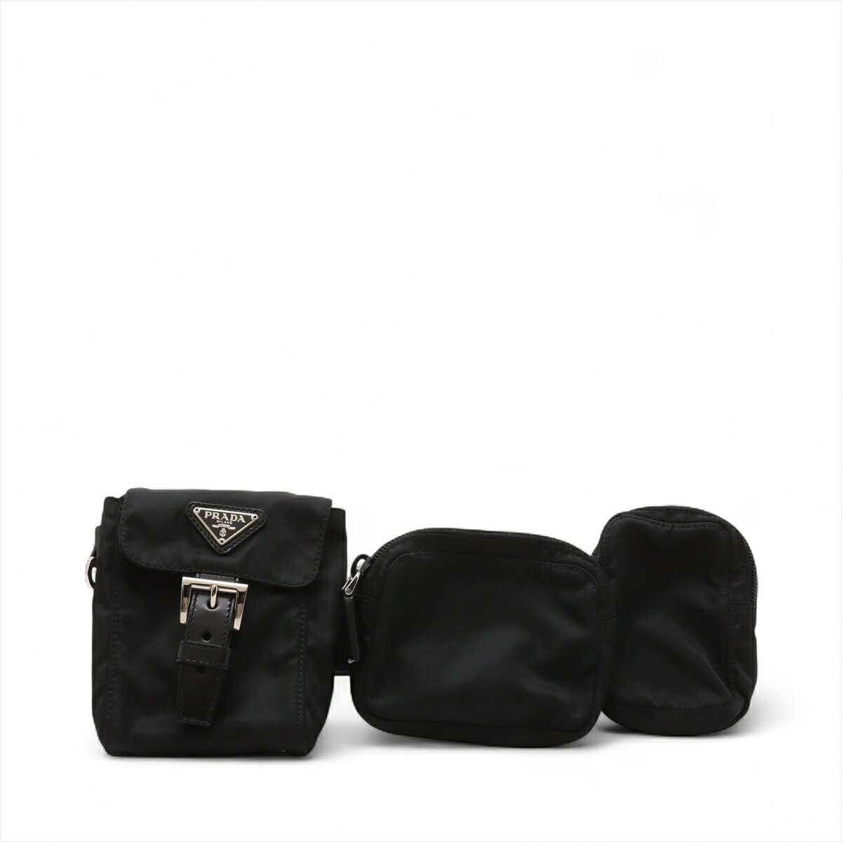 PRADA プラダ テスート ウエストポーチ ウエストバッグ ヒップバッグ ボディバッグ ショルダーバッグ ナイロン NERO 黒 ブラック シルバー金具 【中古】