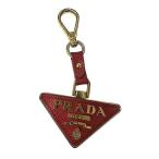 【中古】PRADA プラダ 小物 キーホルダー 三角ロゴ サフィアーノレザー レッド ゴールド金具