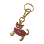 美品 プラダ 1AP433 キャット 猫 メタル ゴールド ピンク キーホルダー キーリング 1356 PRADA