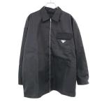 PRADA プラダ RE-NYLON ロゴプレートジップアップナイロンシャツ ジャケット SC810 16HH ブラック M ITWP45YN08PO