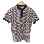 プラダ PRADA ポロシャツ 半袖 レギュラーカラー ハーフボタン ボーダー柄 鹿の子 ロゴ L 紺 ネイビー 白 ホワイト /BB メンズ