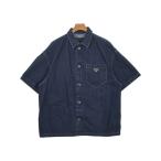 PRADA(プラダ) サイズ:L Denim Shirt トライアングルロゴ 半袖開襟デニムシャツ インディゴ GEC068 S212 12N1【中古】【程度A】【カラーブルー】【取扱店舗渋谷】