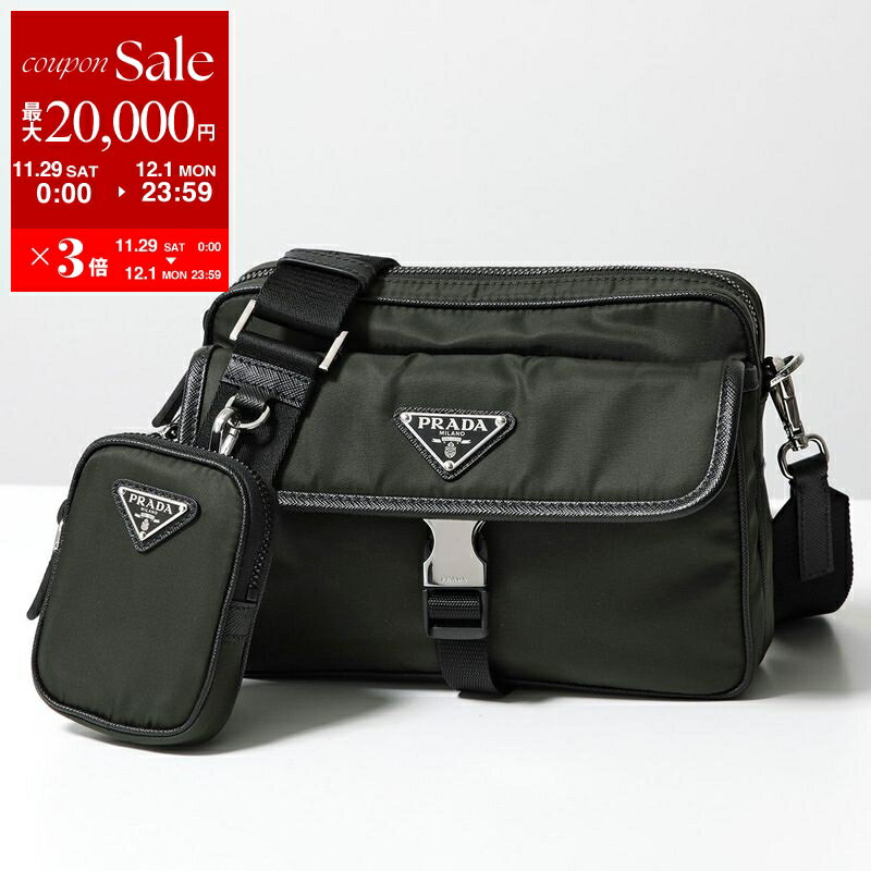 【最大2万円OFFクーポン対象・11/29~12/1限定】PRADA プラダ ショルダーバッグ 2VH133 2DMH メンズ Re-Nylon リナイロン サフィアーノレザー クロスボディ ミニポーチ付き トライアングルロゴ 鞄 カラー2色