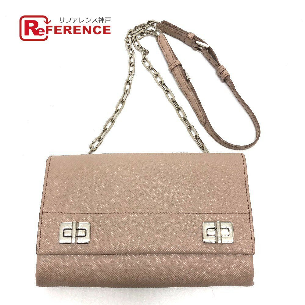 PRADA プラダ BT955X ロゴ/肩掛け チェーンショルダー カバン ショルダーバッグ サフィアーノレザー レディース ベージュ 【中古】