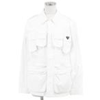 【極美品】PRADA プラダ ジャケット 48 メンズ シャツ ミリタリー 高密度コットンブロード ロゴプレート アウター 付属有 白 イタリア製