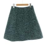 プラダ PRADA スカート ひざ丈 ウール ツイード モヘヤ混 36 黒 ブラック 緑 グリーン ヘリンボーン柄 P127GG /PP ■GY19 レディース
