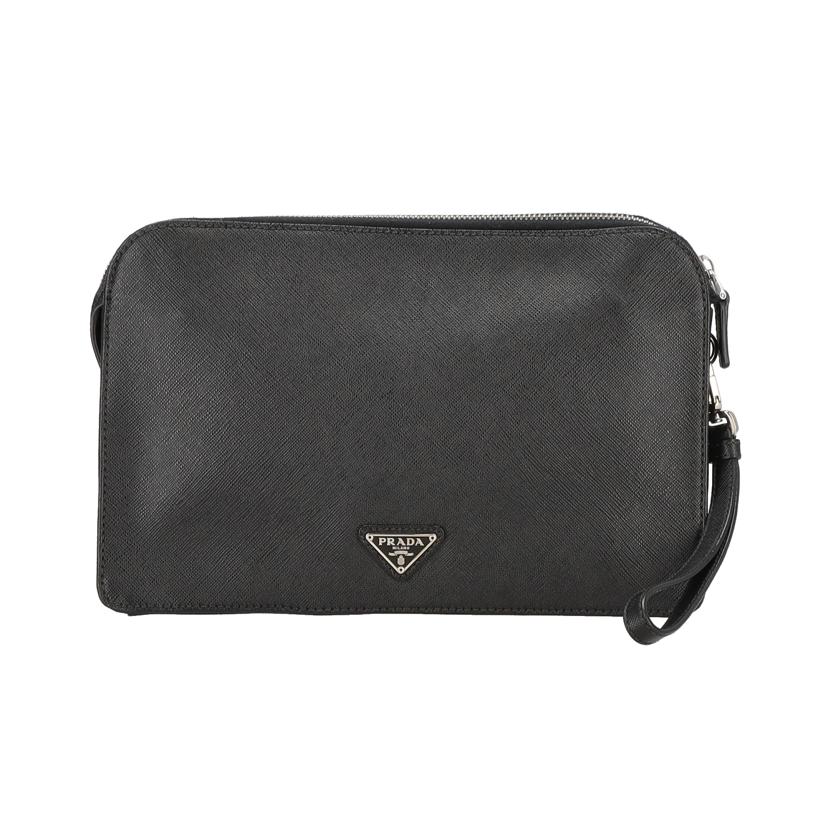 【超美品】 プラダ クラッチバッグ ネセセール リナイロン サフィアーノ レザー テスート ブラック 黒 トライアングルロゴ 三角ロゴ プラダ セカンドバッグ PRADA プラダ ポーチ メンズ レディース ポシェット ミニバッグ ハンドバック バック BAG ブランド 美品 中古
