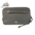 PRADA プラダ サフィアーノ 三角ロゴプレート グレー シルバー金具 レザー クラッチバッグ セカンドバッグ メンズ 600829
