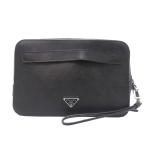【SAランク】 プラダ PRADA クラッチ サフィアーノ (レザー) 2NG005 セカンドバッグ ポーチ トライアングルロゴ メンズ ブラック 正規品 極美品 中古 mbq10009