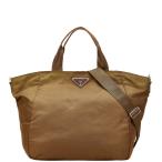 プラダ 三角ロゴプレート トートバッグ ショルダーバッグ 2WAY ブラウン ナイロン レザー レディース PRADA 【中古】