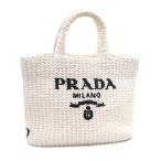 プラダ スモールトートバッグ 1BG422 ラフィア クロシェ ホワイト トライアングルロゴ ハンドバッグ カゴバッグ 白 中古 送料無料