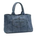 プラダ カナパ ハンドバッグ B1877B デニムファブリック インディゴ デニムバッグ トートバッグ 青 トライアングルロゴ 中古 送料無料