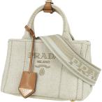 プラダ PRADA リネンブレンド ミニ ハンドバッグ ミニ カナパ 2way ショルダーバッグ トート レディース キャンバス レザー ナチュラル 1BA038