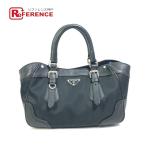PRADA プラダ トライアングルロゴ トート ハンドバッグ ナイロン/レザー ブラック レディース【中古】