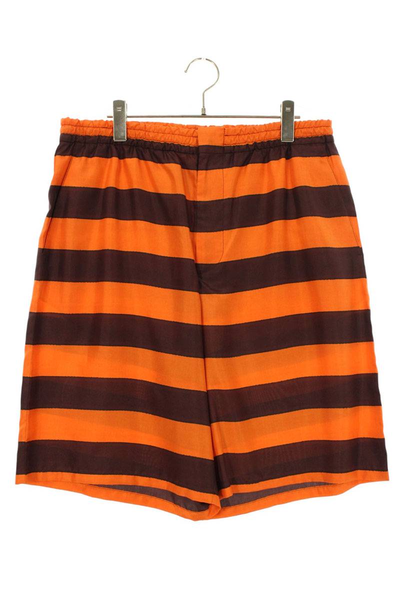 プラダ PRADA サイズ:L SPH218 ボーダーシルクイージーハーフパンツ(オレンジ×ブラウン)【109052】【SB01】【メンズ】【中古】bb356#rinkan*S