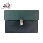 美品 PRADA プラダ サフィアーノ 三角ロゴプレート バイカラー VR089M クラッチバッグ ビジネスバッグ ドキュメントケース メンズ 503820