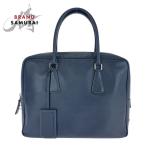 PRADA プラダ サフィアーノ 三角ロゴプレート ネイビー シルバー金具 レザー ビジネスバッグ ハンドバッグ メンズ 505192