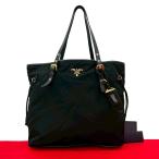 極 美品 PRADA プラダ ロゴ 金具 ナイロン サフィアーノ レザー 本革 トートバッグ セミ ショルダーバッグ ビジネスバッグ ブラック 5255a
