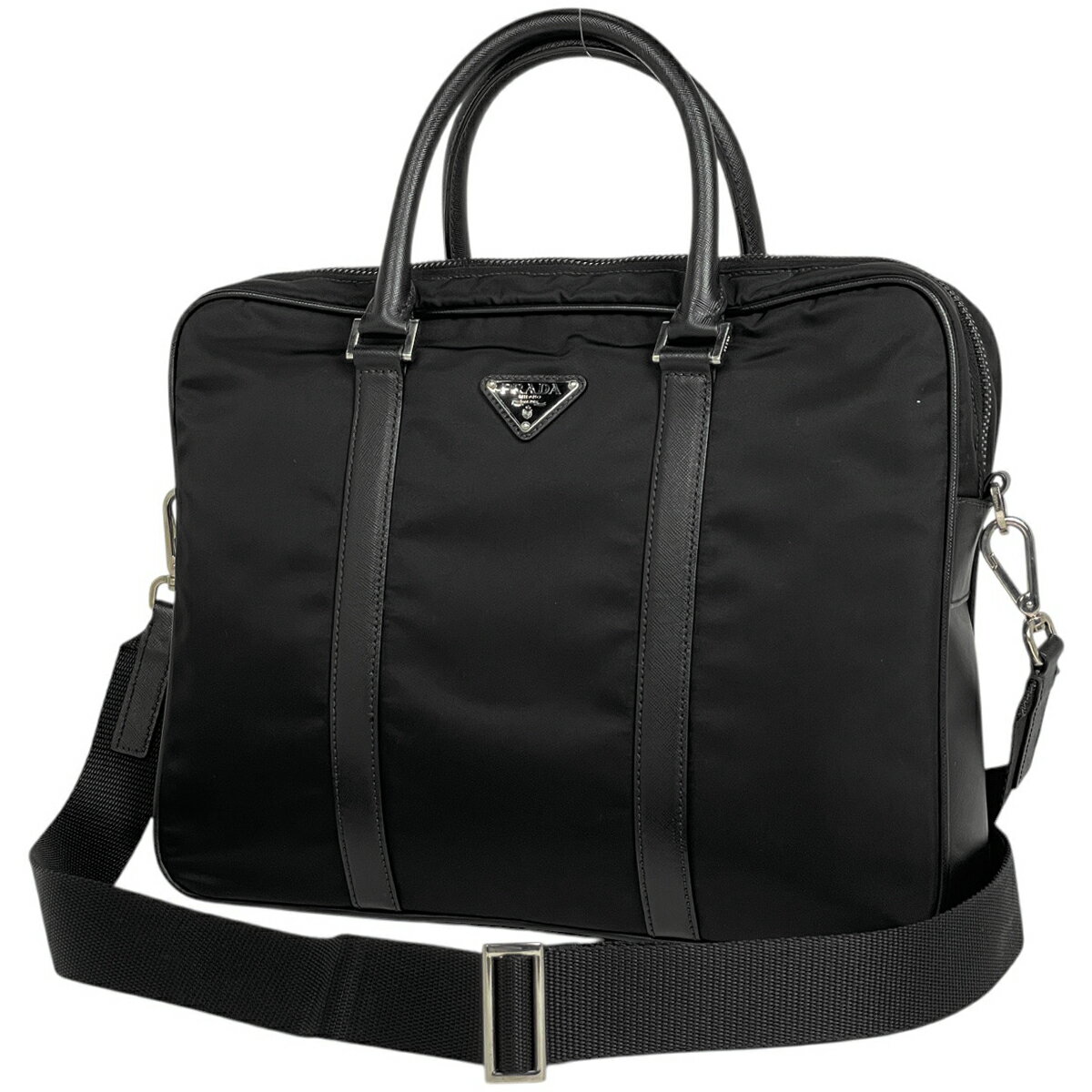PRADA プラダ トライアングルロゴ ビジネスバッグ ブリーフケース 書類カバン 2WAY ショルダーバッグ ナイロン NERO ブラック シルバー金具 2VE368 【中古】
